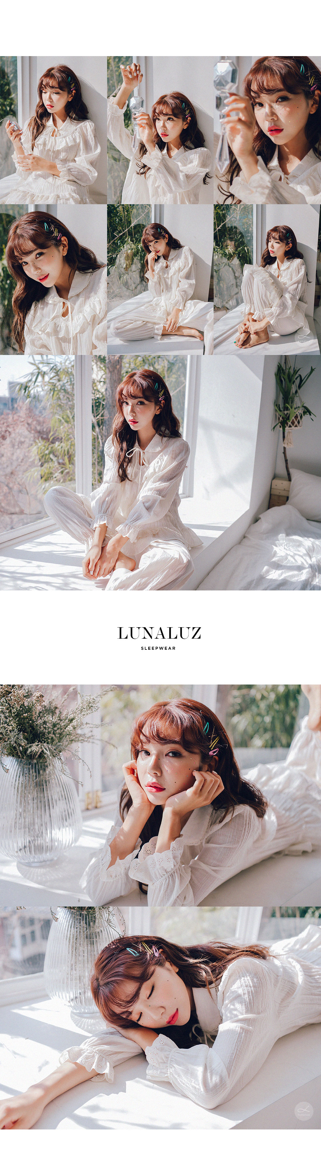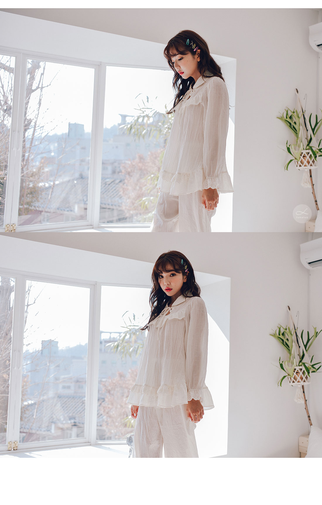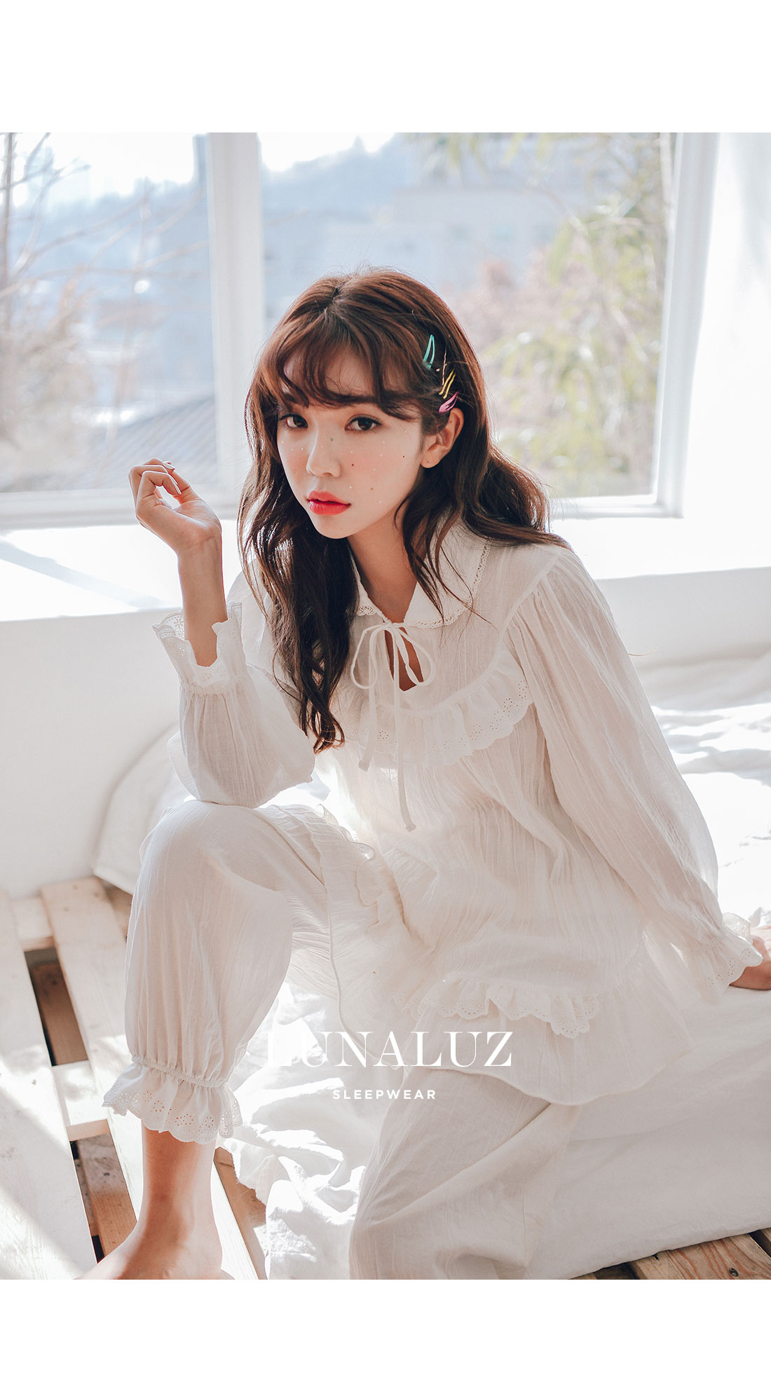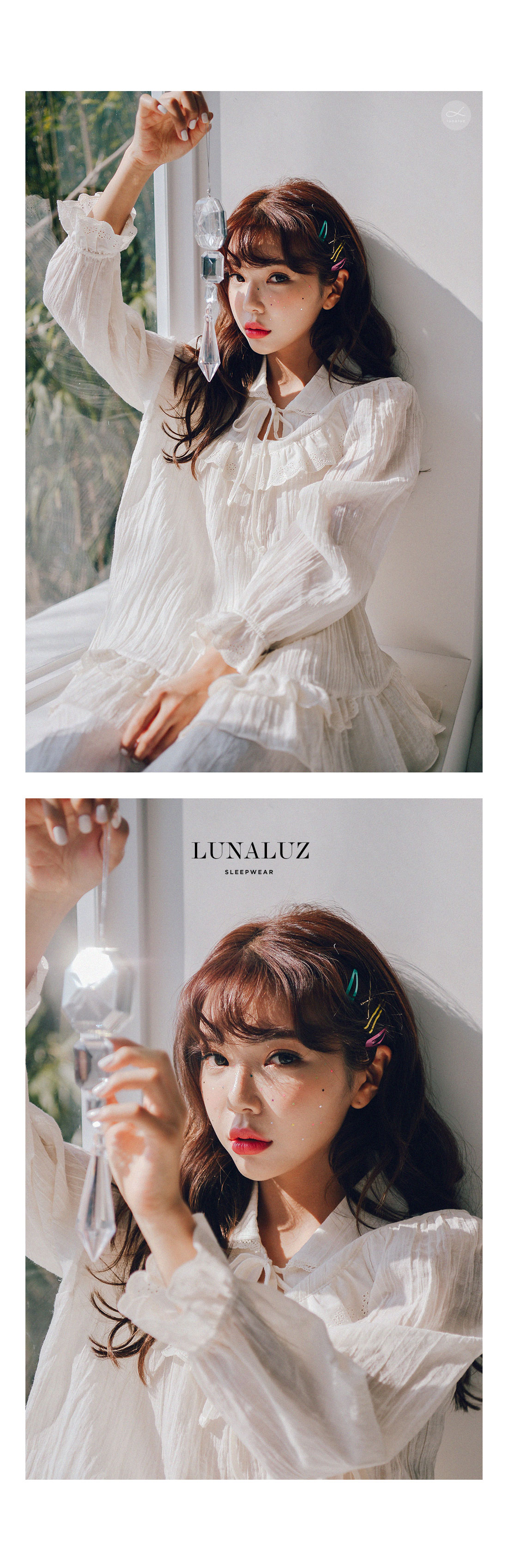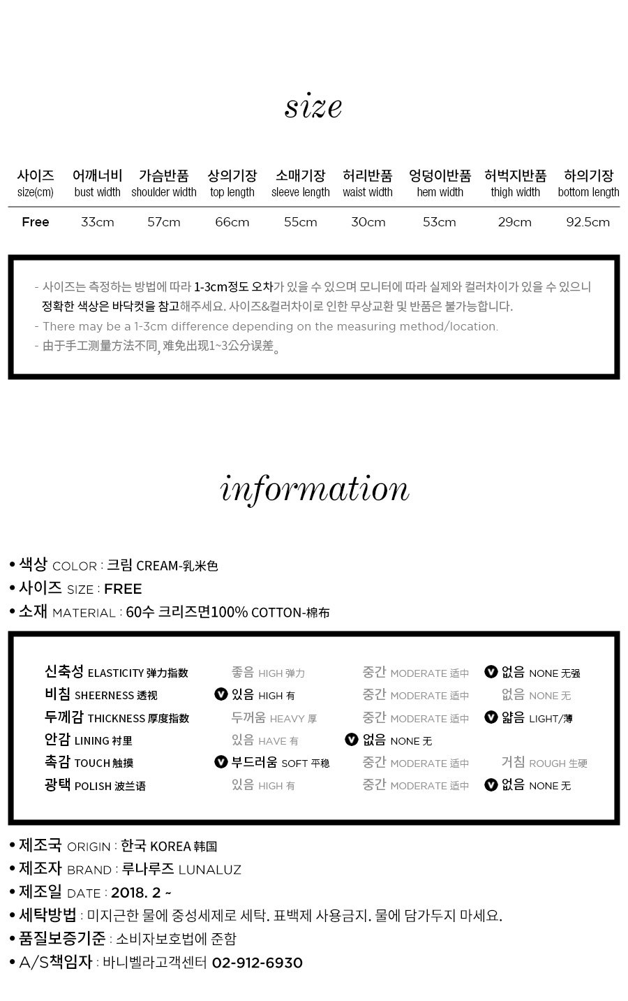 불규칙한 구김선이 은은하고 고급스러운 분위기를 연출해주는 크리즈 소재의 60수 면 잠옷입니다. 봄 여름에 강력 추천해드리고 싶은 소재로 피부에 들러붙지 않는 네츄럴한 실루엣을 만들어주며 시원하고 가볍습니다. 크리즈 가공 소재로 세탁, 관리하기 용이하고 여름에 착용하기 좋은 통풍이 우수한 소재입니다. 자연적이고 네츄럴한 스타일을 좋아하는 고객님들께 특히 추천해드리고 싶은 잠옷입니다, 은은한 연베이지 컬러감이 고급스러움을 더해줍니다. 크리즈가 잡혀져 있는 원단인 많큼 많은 요척을 사용한 잠옷으로 소재에서부터 충분한 매력을 느끼실 거에요! DETAIL 카라 스타일의 잠옷으로 양 사이드에 길 재끈으로 리본을 매듭지어 연출할 수 있는 잠옷이에요. 카라의 끝 부분에 동일한 컬러로 레이스를 염색시켜 봉제했습니다. 바스트 라인을 따라 동일한 컬러의 면 레이스를 염색시켜 봉제 했는데요. 페미닌한 블라우스 느낌이 감도는 잠옷으로 굉장히 고급스러워요! 뒤에서 보았을 때도 실루엣이 매력적입니다. 우아하고 팬시한 잠옷으로 적극추천해 드립니다. 100% 국내 생산으로 봉제선이 깔끔하고, 디자인과 부자재, 소재의 퀄리티가 높습니다. SIZE 44반~66size까지 커버 가능한 free 사이즈입니다.