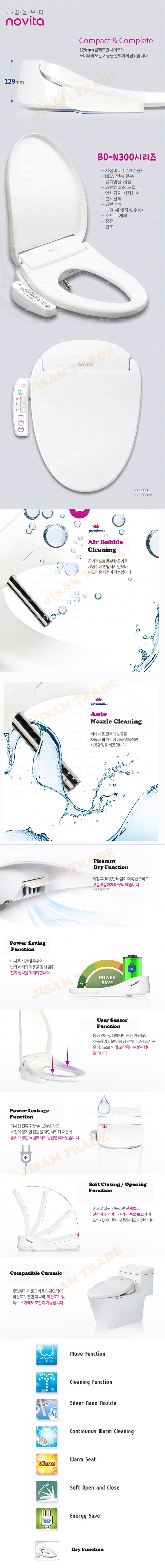 Novita BD-N310T Digital Toilet Bidet Toilet Seat Warm Water, Stainless Nozzle, Auto Nozzle Cleaning, Dry function Added White 220V Heated Seat Simple English User's Guide.