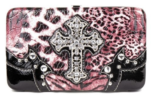 -. Title : Pink Leopard P.R.Int Cross Rhinestone Wallet