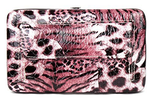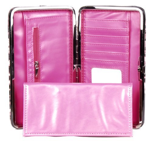 -. Feature : This beautiful Pink Leopard P.R.Int Cross Rhinestone Wallet features a unique style and detailed cross with wings. / Size: 7.5(L) X 4.5(H) X 1(W) / Feel leather / Metal frame / Easy open to push button
