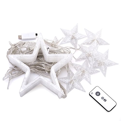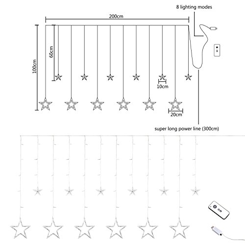 - Specifications:Soft string,you can bend it around signs,plants,furniture and almost everything else.12 stars and 138 led lights in total. The diameter of small star:10 cm,the droop length is 60cm; the diameter of larger star:20cm,the droop length is 90cm.Power line length:2.5m
