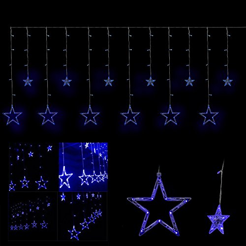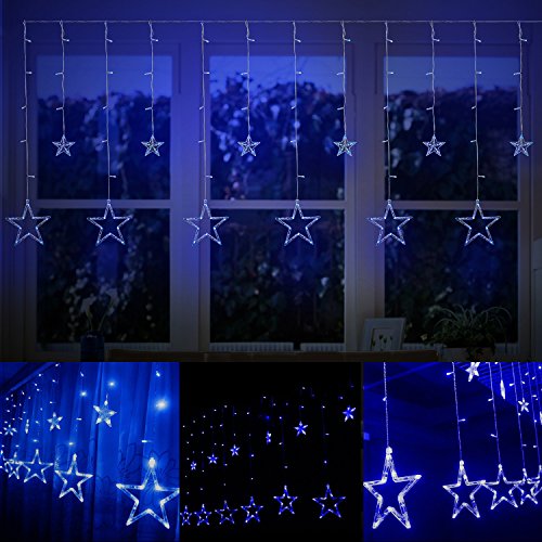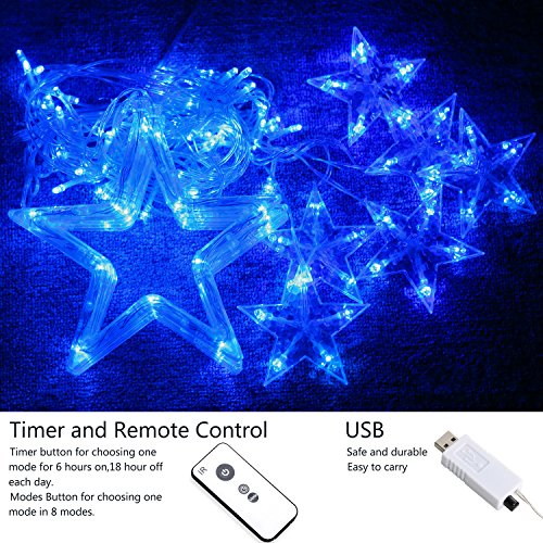 Curtain Lights Stars,Bienna 6.6ft/2M 138 LED USB Powered Twinkle Fairy Waterproof String Lighting [8 Modes] with Remote & Timer for Christmas Window Weddings Bedroom Indoor Outdoor Home Party-Blue