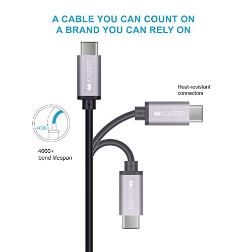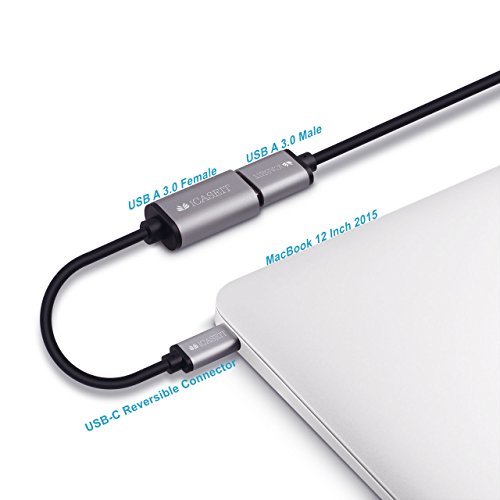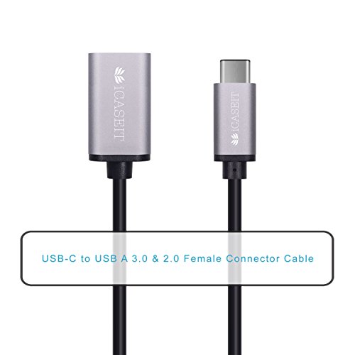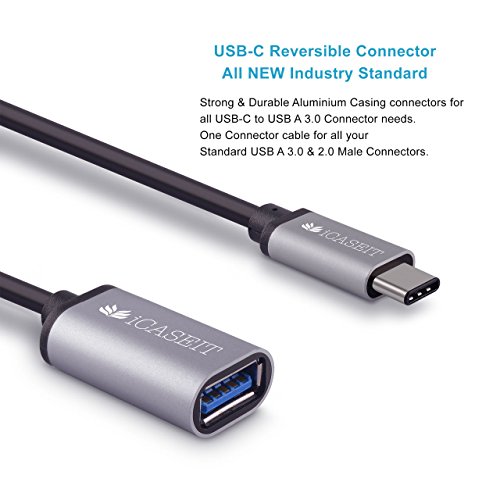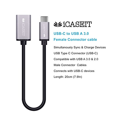 USB Type C Adapter, iCASEIT USB Type C (USB-C) to USB A USB 3.0 Female 56k ohm Data Charging Cord Reversible | MacBook 12, 13 & 15", Pixel, Nexus 5X 6P, Lumia 950/950XL, OnePlus 3 | GRAY 20cm