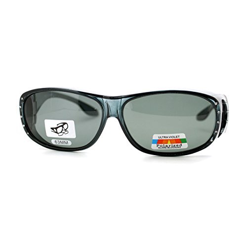 Womens Polarized Fit Over Glasses Rhinestone Sunglasses Oval Rectangular Gray