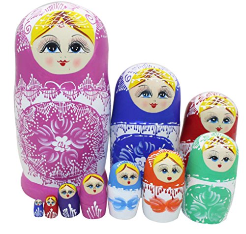 -. Feature : Traditional Snowflake russian nesting dolls/russian dolls/matryoshka dolls. Pink blue red purple green yellow color. / Contains 10 colorful dolls,each one is different color,stack into one another to appear as one / Cute little girl P.R.Incess with snowflake pattren / Children's great toy and wonderful decoration for house / Ideal gift in birthday,christmas or any special day. Housewarming gifts.