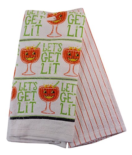 - Halloween "Let's Get Lit" Pumpkin Cocktail Kitchen Towels