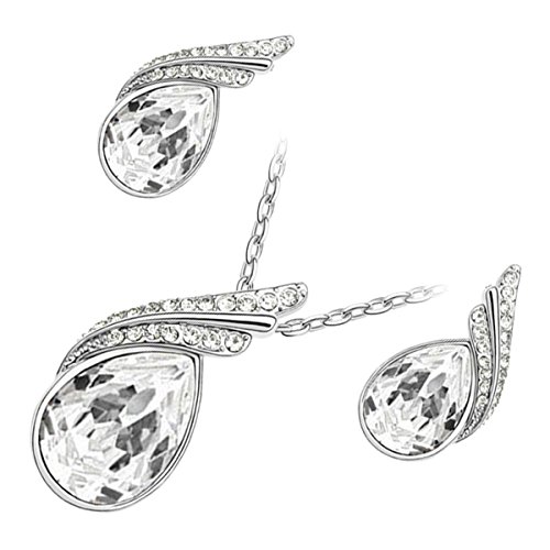 -. Title : UPCO Jewellery Sterling Silver Plated Water Drop Main Stone and 2 Crystals Covered Waves on Top Set of Earring and Pendant Necklace