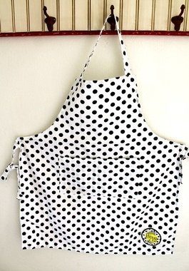 Lemon Poppy Inc., Black and White Polka Dot Apron With 2 Front Pockets
