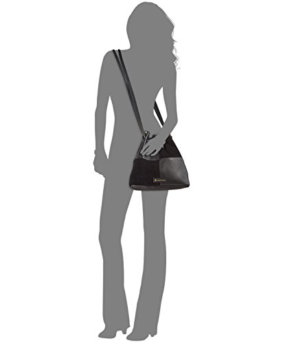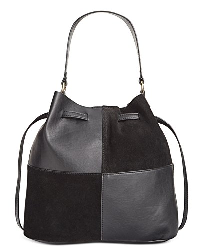 INC Womens Picadilly Faux Leather Leather Trim Crossbody Handbag Black Medium
