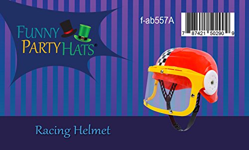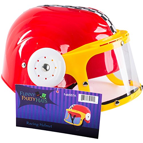 This cool kids' racing helmet sparks the imagination while pretending to drive down the Speedway at the Indy 500 or at Talladega. This child's plastic helmet and visor is a great toy helmet for your budding race car driver. The plastic visor easily shifts up and down and locks securely into place with an adjustable chin strap.