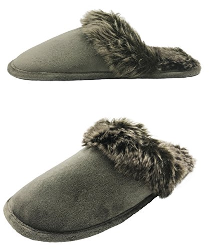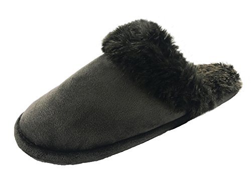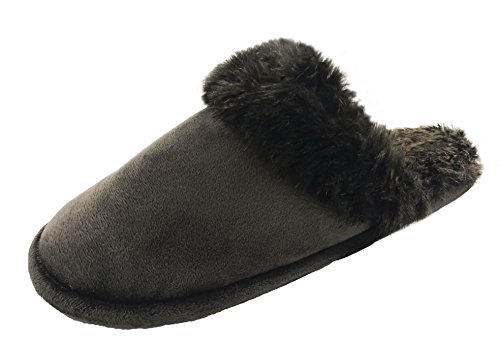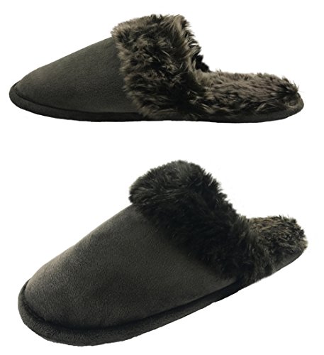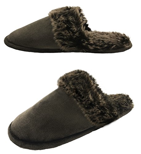 Finoceans Women's Faux Fur Memory Foam Slippers House Bedroom Dark Brown 8-10M