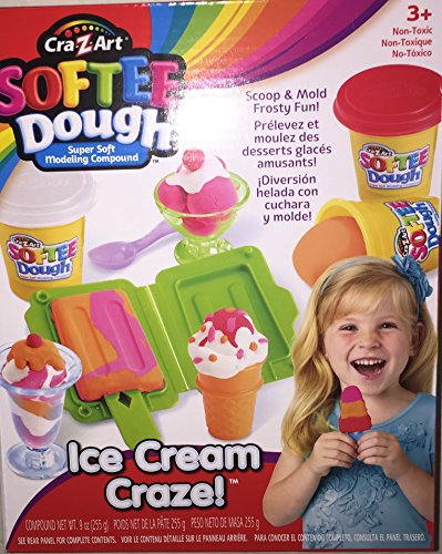 We all scream for ice-cream! use the new Super cool ice cream Maker to squeeze out smoothies, cones or banana splits. The side of the unit has fun molds for sprinkles, cherries, bananas and everything you need to complete your Doughy desserts! comes with 3 cans of Softee dough Super soft modeling compound.Feature