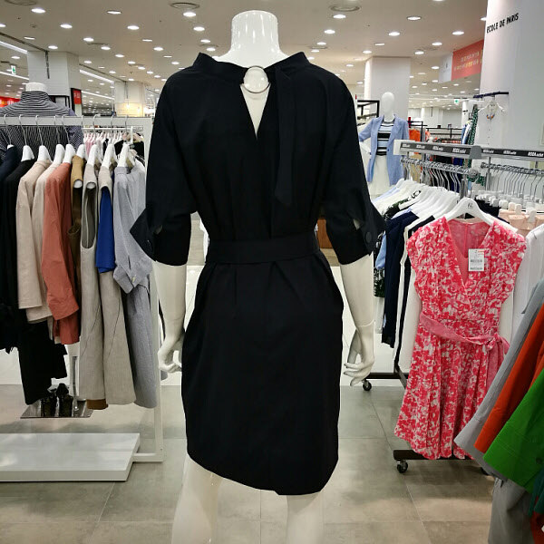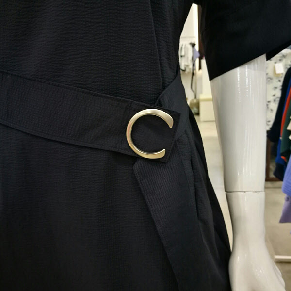 넥라인이 여성스럽고 벨트가 늘어지는 쎄미정장스타일이며 스판소재라 활동하기 편함