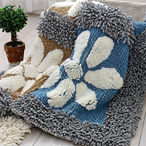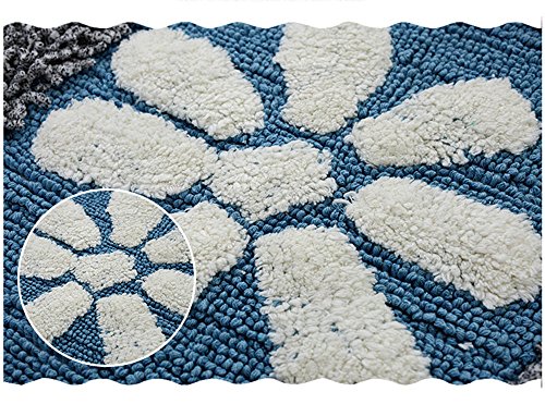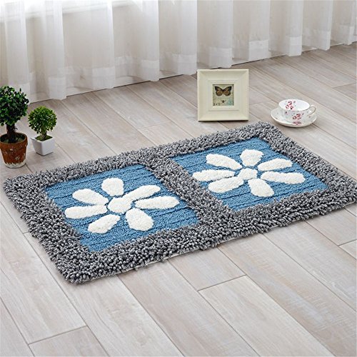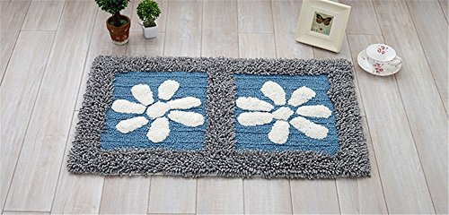 JSJ_CHENG Rectangular Cotton Floral Bathroom Rugs Area Carpets (17.7inch by 27.5inch, Blue)