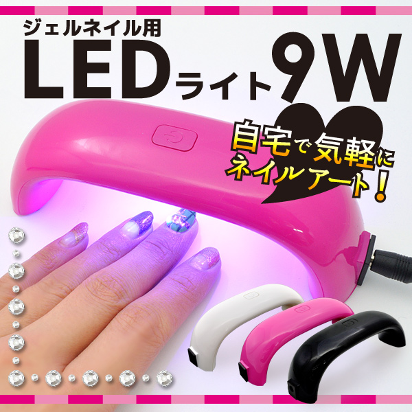 広く大きく強く照らす、LED球でスピーディに硬化!ジェルネイル用LEDライト9W