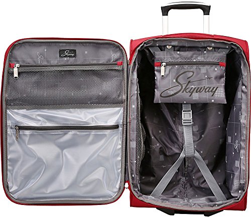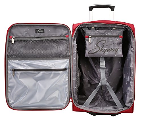 Studio : Skyway Luggage Publisher : Skyway Luggage Binding : Apparel Product Description This lightweight collection features a durable, classic design in an updated color palette. The retractable handle system has an ergonomic push-button locking handle to help minimize hand fatigue. The interiors feature a fully luxurious lining and multiple accessory pockets for many organization options. For your convenience, the deluxe interior wet pocket keeps small toiletry items separate from other packed items. 0