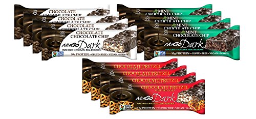 -. Binding : Health and Beauty -. Brand : NuGo -. Feature : NuGo Dark Variety Pack 12 Count / 10g protein, Real cacao dark chocolate * Certified kosher and pareve by the OU / Vegan friendly delicious high protein snack / Real cacao dark chocolate is an excellent source of flavanol antioxidants / 4 - NuGo Dark Chocolate Chip * 4 - NuGo Dark Chocolate Pretzel * 4 - NuGo Dark Mint Chocolate Chip -. IsAdultProduct : 0 -. Label : NuGo -. LegalDisclaimer : Other Ingredients: Chocolate Pretzel Bars: Dark Chocolate (Unsweetened Chocolate, Cane Sugar, Cocoa Butter) -. Manufacturer : NuGo -. PackageQuantity : 1 -. ProductGroup : Health and Beauty -. ProductTypeName : HEALTH_PERSONAL_CARE -. Publisher : NuGo -. Studio : NuGo -. Title : NuGo Dark Variety Pack 12 Count