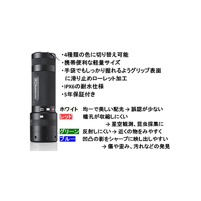 원본상품명: LEDLENSER(レッドレンザ?) LEDフラッシュライト TスクエアQC 4色LED(白赤??) 【明るさ約140ル?メン】 【最長7年保?】 ?4乾電池(AAA)x3本/防水等級:IPX6