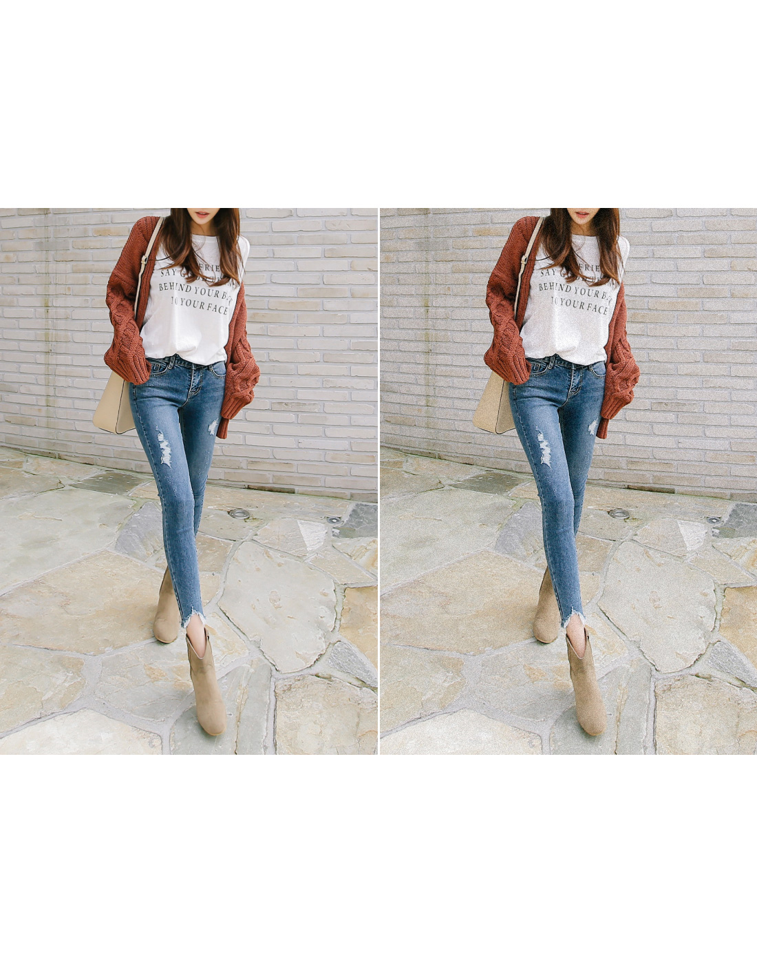 내추럴한 무드의 숄 가디건을 소개합니다.