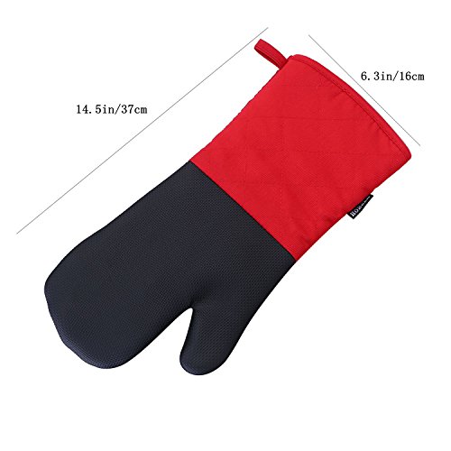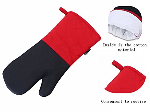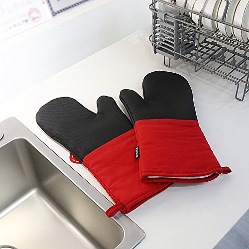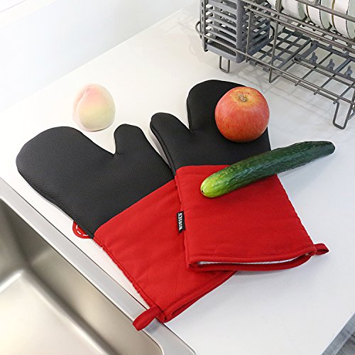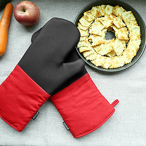 Heat Resistant Oven Mitts with Quilted Cotton Lining,Non-slip Cooking Gloves