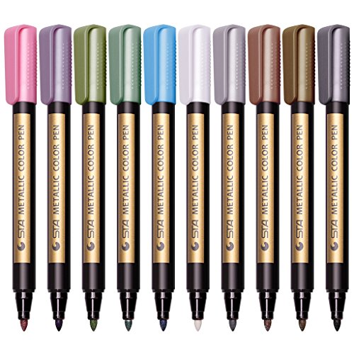 Permanent Metallic Paint Markers Pens - Medium Point Metal Art Marker Set For Gift Card Making, DIY Photo Album, Rock Painting, Ceramic, Glass, Metal, Wood, Works on Most Surfaces, Pack of 10