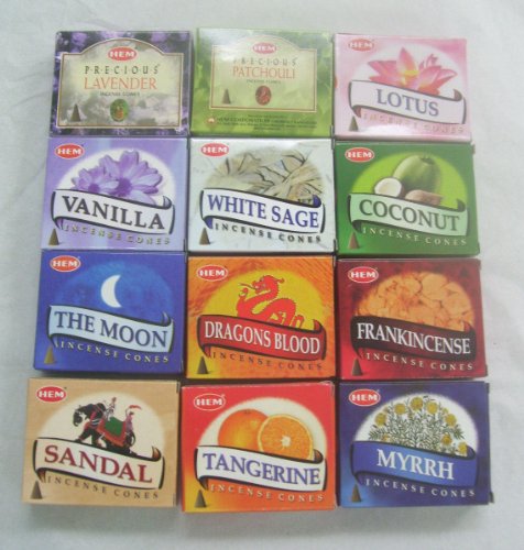 12 Assorted Boxes of HEM Incense Cones, Best Sellers Set #2 12 X 10 (120 total)