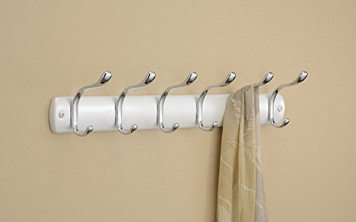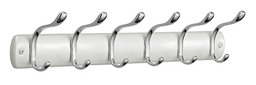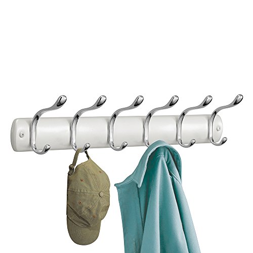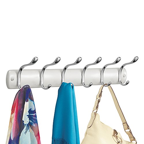 mDesign Wall Mount Entryway Storage Rack for Jackets, Coats, Hats, Scarves - 12 Hooks, Pearl White/Chrome