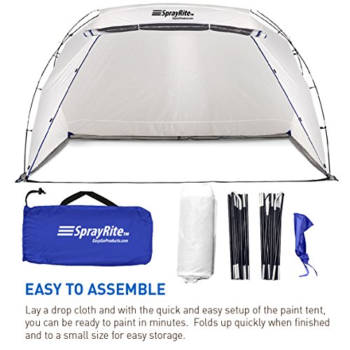 Studio : EasygoProducts Publisher : EasygoProducts Binding : Kitchen Product Description Our stain and spray painting shelter makes it easy to paint your medium to large furniture, crafts or various projects while keeping your area free from overspray and your freshly painted items safe from dirt, wind, bugs, or leaves. The three-sided curved design of our paint canopy causes the spray overflow to the ground to help protect your home, garage, or driveway. The paint tent can be assembled quick and easy. It is lightweight, portable, and folds up easily. 0