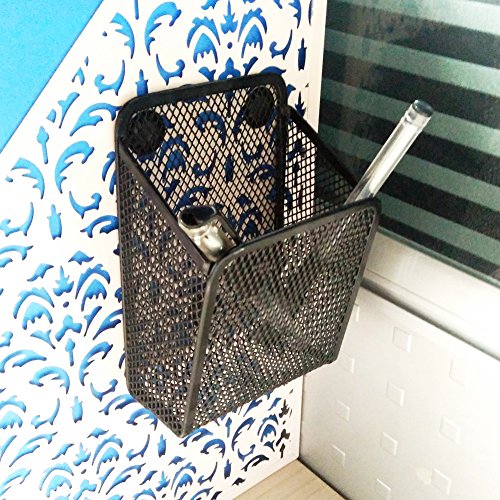 Ozzptuu Magnetic Sturdy Metal Mesh Pencil Holder Storage Basket Organizer for Whiteboard/Refrigerator/Magnetic Surface (Black)