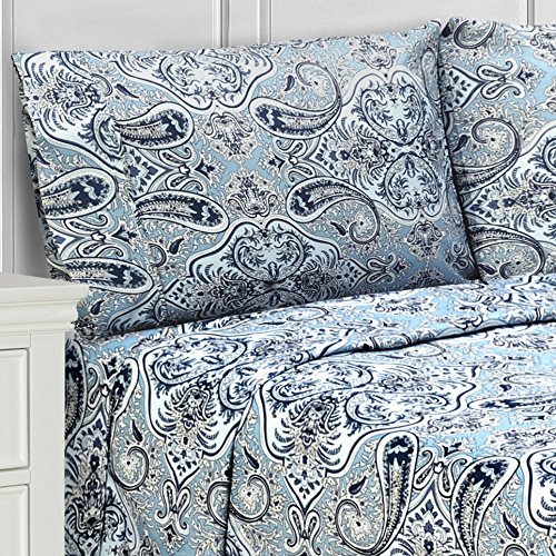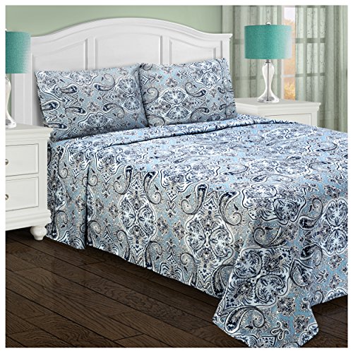 Superior Luxury Paisley Bedding, 100% Brushed Microfiber 4-Piece Sheet Set, Silky Soft, Light Weight, and Wrinkle Resistant - Queen Sheets, Light Blue