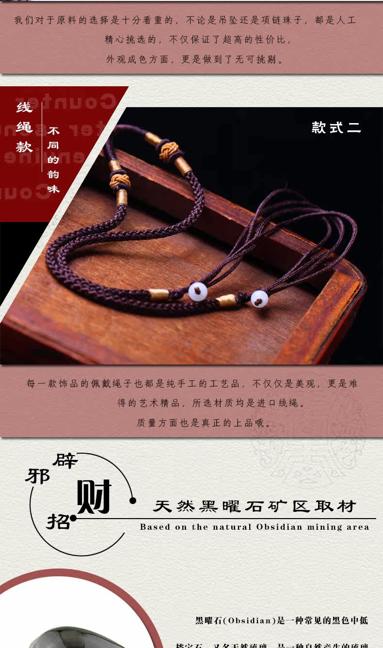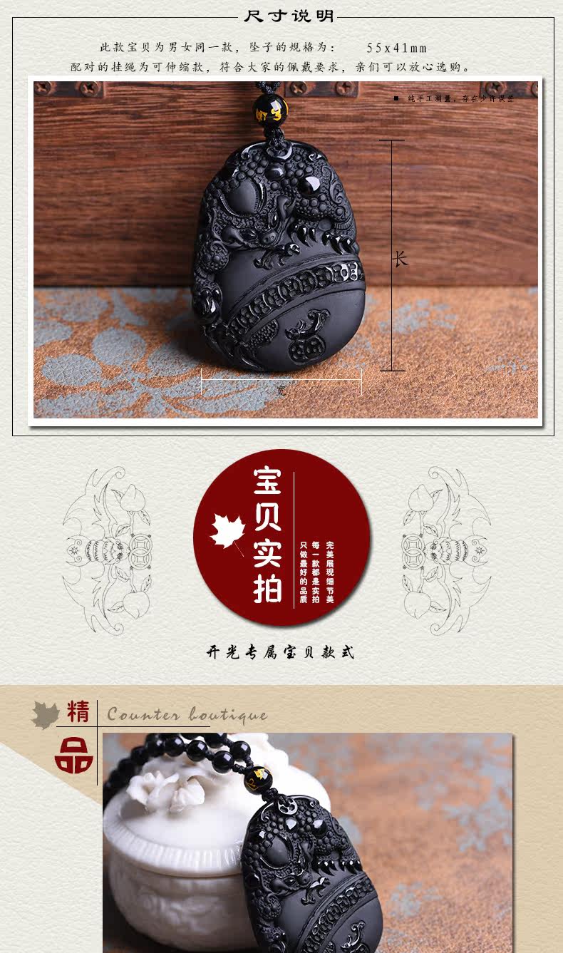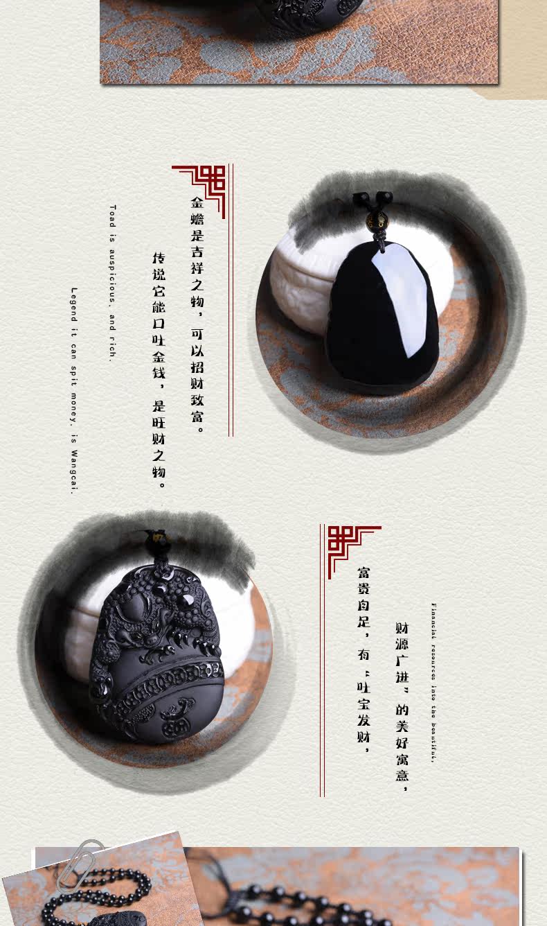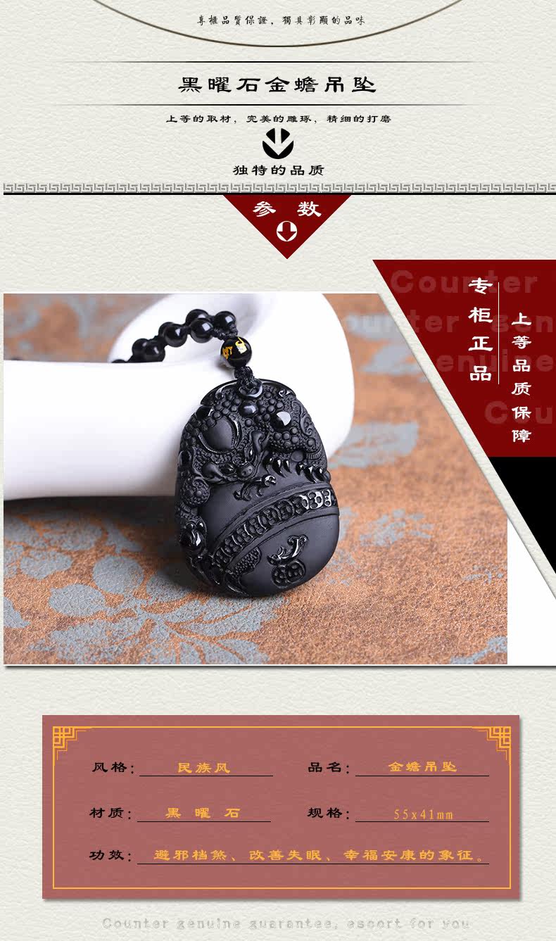 开光天然黑曜石三足金蟾三蟾拱福富贵蝉联本命年招财运吊坠
