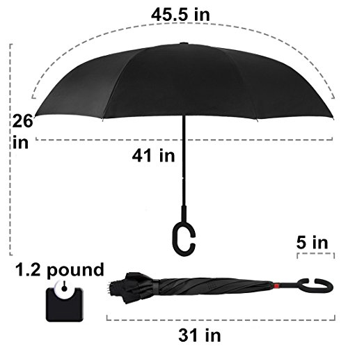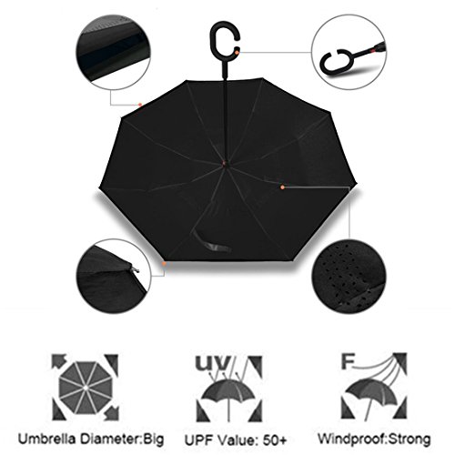 Double Layer Inverted Umbrella Design Successfully preventing car seat from getting wet, avoiding making others' clothes wet when stand close on the bus or subway.