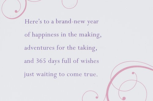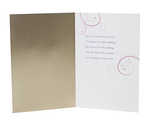 Inside message: Here's to a brand-new year of happiness in the making, adventures for the taking, and 365 days full of wishes just waiting to come true.