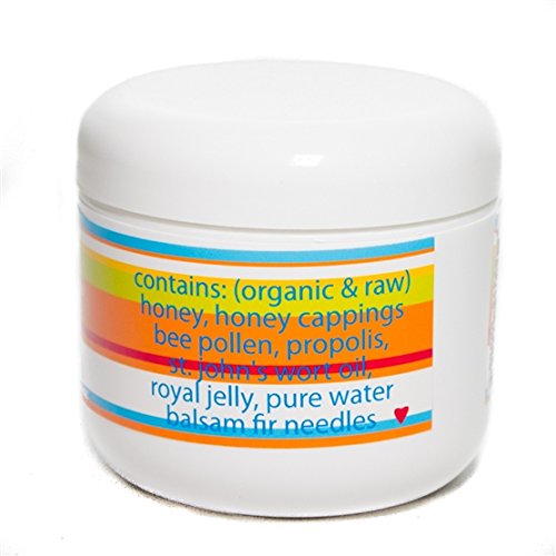 Ingredients: wild flower honey cappings, beeswax, bee pollen, propolis, St. Johnswort oil, royal jelly, purified water and balsam fir needles.