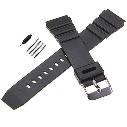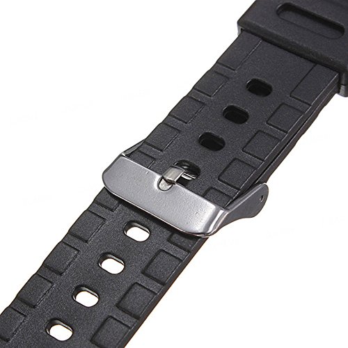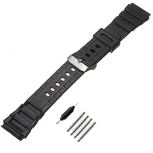 -. Feature : Band width: 18mm, 20mm,22mm,25mm or 30mm / Band color: Black / Total length:long part about 130mm+short part 90mm / Material:Band High-quality silicone rubber,Buckle Stainless steel / Package: 1pcs watch band ,1pcs small tool,4pcs sP.R.Ing bar