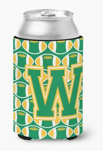 Caroline's Treasures CJ1069-WCC Letter W Football Green and Gold Can or Bottle Hugger, Multicolor