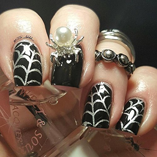 Whats Up Nails - Spider Web Nail Stencils Stickers Vinyls for Nail Art Design (1 Sheet, 12 Stencils)
