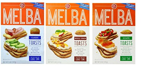 Old London Melba Toasts Crackers 3 Flavor Variety Bundle: (1) Classic Melba Toasts, (1) Whole Grain Melba Toasts, and (1) Sesame Melba Toasts, 5 Oz. Ea. (3...