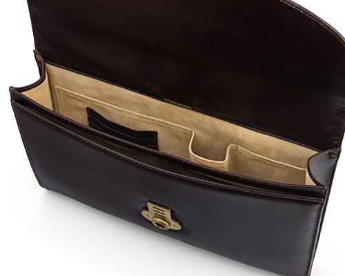 Studio : SageBrown Publisher : SageBrown Binding : Apparel Product Description When a man says 'briefcase' he may no longer be talking about the hard-shell type with combination locks but a soft leather bag slim enough to carry at his side and spacious enough to transport laptop documents and all else. The briefcase is secured with a stylish metal clasp. Open to reveal one large compartment luxuriously lined in sumputous suede with three suede pockets to store a mobile device business cards and other personal effects. Just infront of this is a slim document pocket and there is external storage at the back with a large separate pocket with zip fastening for added secruity. 0