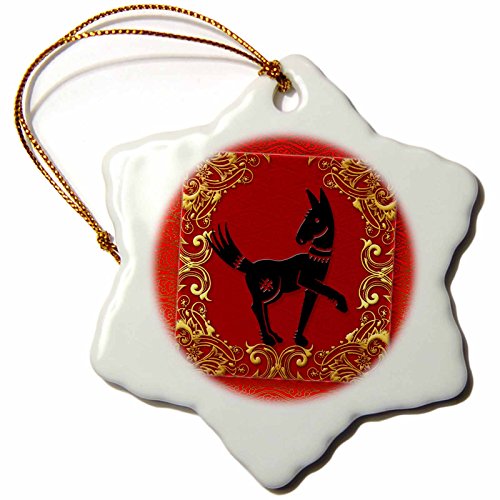 3dRose orn_101851_1 Chinese Zodiac Year of The Dog Chinese New Year Red, Gold and Black-Snowflake Ornament, Porcelain, 3-Inch