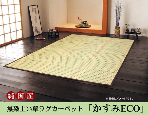 純国産/日本製 掛川織 無染土い草ラグカーペット 『かすみECO』 約200×200cm 正方形