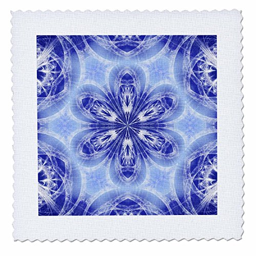 3dRose Blue White Abstract Flower Floral Kaleidoscope Fractal Art - Quilt Square, 14 by 14-Inch (qs_185051_5)