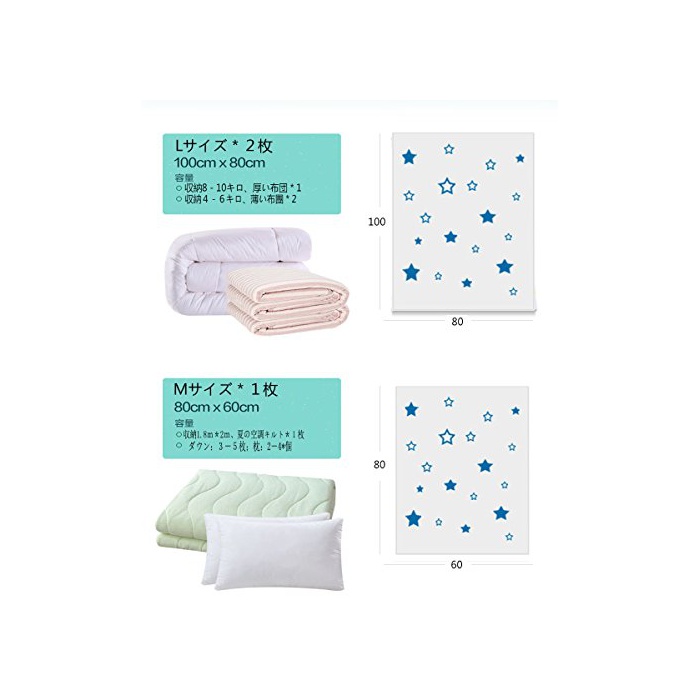 크군요 수납 효과:약1/3에 이불이나 의상을 압축해 수납으로 옵니다.두께가 업,간단하게 갈라 놓는 일이 없는 때문에,안심하고 겹쳐 두어도 괜찮음,1세트의 압축봉투는 일가의 수납 문제를 해결 할 수 있는