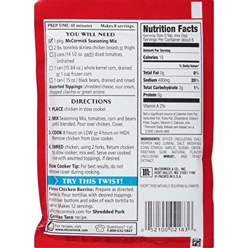 McCormick Slow Cookers Fiesta Chicken Seasoning Mix, 1.5 oz (Case of 12)