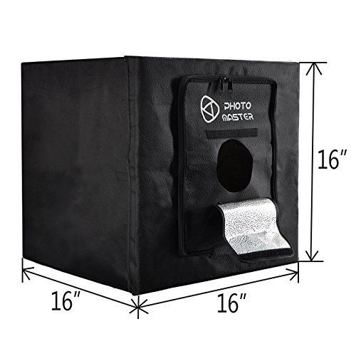 Studio : Happyjoy Publisher : Happyjoy Binding : Electronics Product Description Designed for effortless product photography, the lighting tent can be quickly assembled and comes with smooth, easy-to-clean, and long-lasting black, white and Orange background backdrops. The tent contains two adjustment LED lights panel located at the top to provide bright, daylight-balanced light to the subject. The reflective lining inside the tent combines with the even LED light to minimize shadows and balance the distribution of light. Adjust the front opening according to your needs by closing it up for smaller products and opening it up for larger ones. Utilize the window on the top of the tent for a dynamic bird's eye shooting position. The tent also folds up into our convenient carry case for storage and transportation.