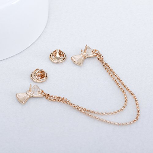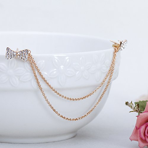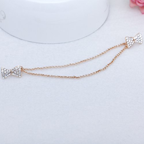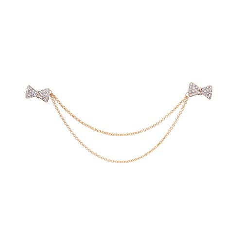 Cute Girl Accessory Gold-tone Clear Crystal Bowknot Link Collar Brooches Women Banquet Party Pins