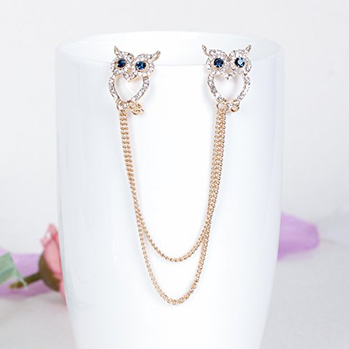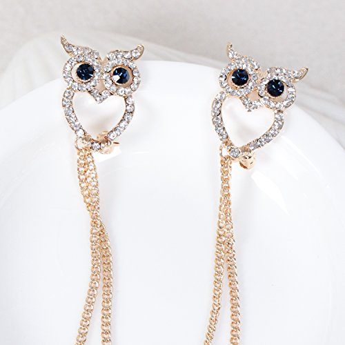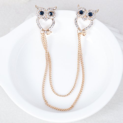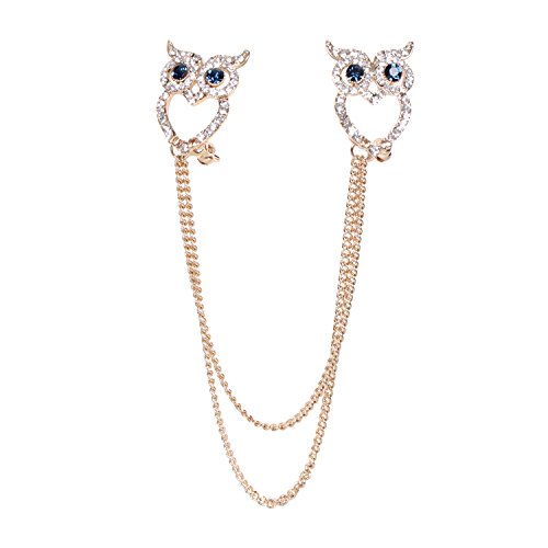 Cute Animal Brooches Gold-tone Clear Crystal Novelty Owl Link Girl Women Bouquet Party Art Collar Pins
