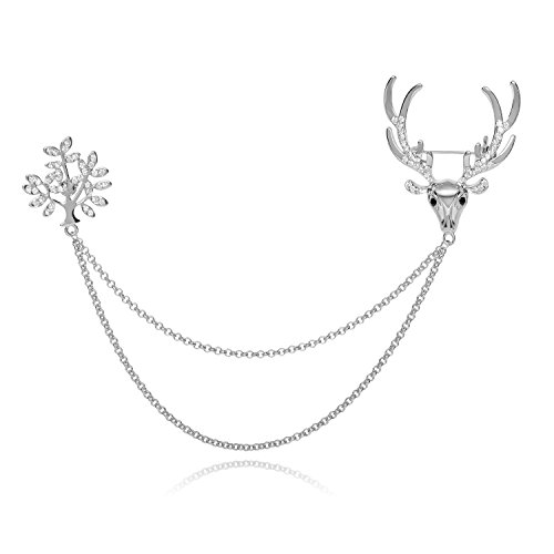 Cute Animal Jewelry Silver-tone Clear Crystal Elk Link Girl Women Pins Shirts Collar Brooches Lapel Pin