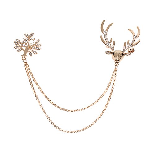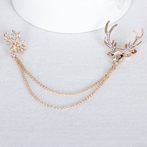 Cute Women Animal Jewelry Gold-tone Clear Crystal Elk Link Girl Women Pins Shirts Collar Brooch Lapel Pin