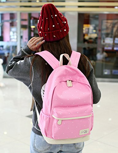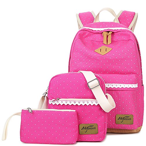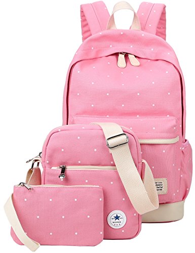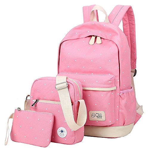 Pink Backpack Material: High quality and lightweight Canvas Quantity: 3PCS Laptop Bag + Shoulder Bag + Purse/Pencil Case